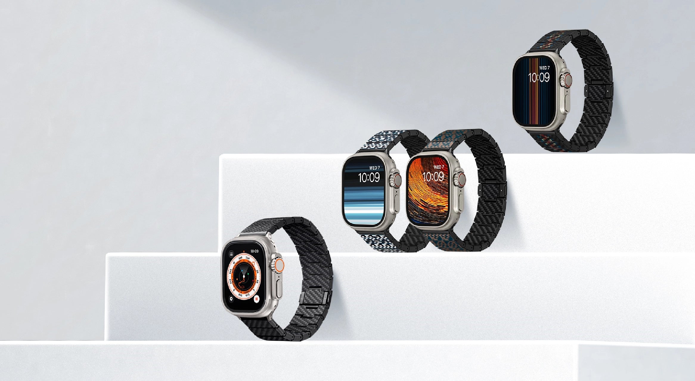 World’s first watch band with 100% carbon fiber links compatible with all Apple Watch models including Series 11-1, SE3/SE, and Ultra 3/Ultra 2/Ultra.