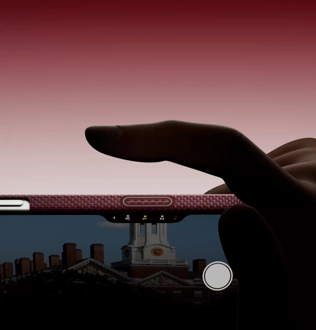 A case under 1 mm thick shields the Camera Control Button with aramid fiber, while a hidden capacitive layer lets you tap and slide effortlessly. Seamlessly integrated, it preserves the aramid texture for precise, responsive control.